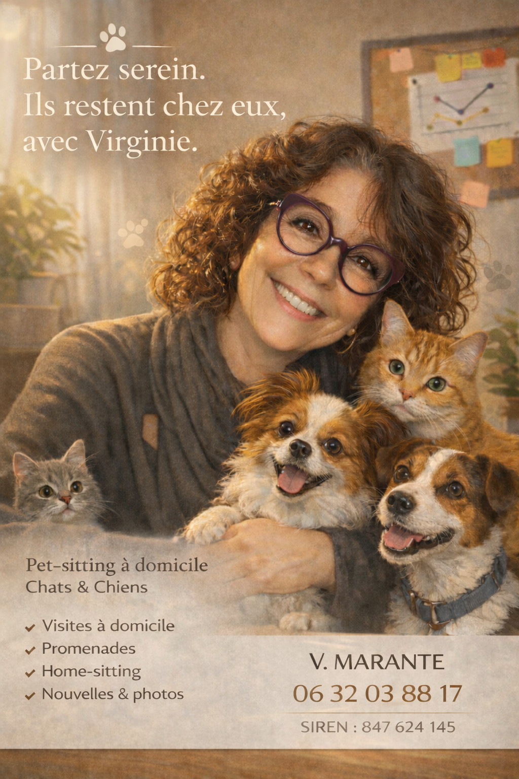 promenades ou des visites (1 à 3 par jour ) dans un rayon de 15 kms autour de saint andré de cubzac. J'apporte de la compagnie et câlins à votre animal pendant votre absence (déplacements professionnels ou vacances)